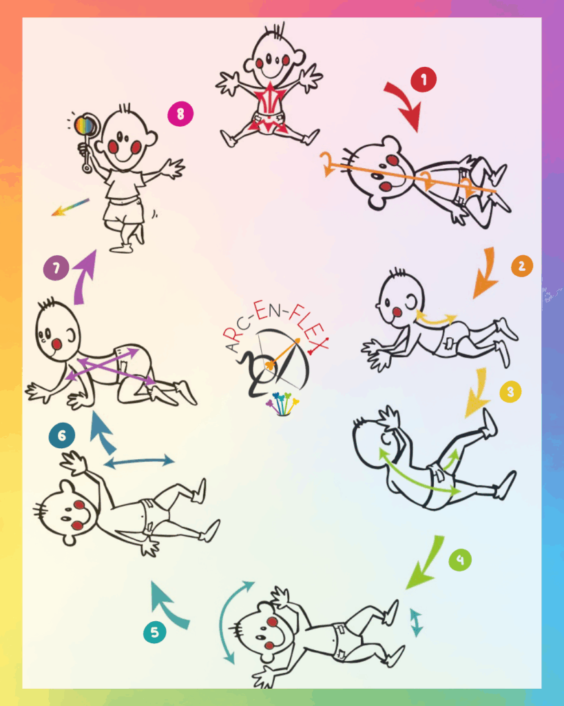 Sous ce texte, je vous invite à découvrir quelques vidéos pour danser, vivre et célébrer ces 8 étapes essentielles de notre développement moteur.